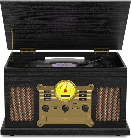 10-in-1 Vintage Bluetooth Turntable with Speakers, Vinyl CD Cassette Player & AM/FM Radio